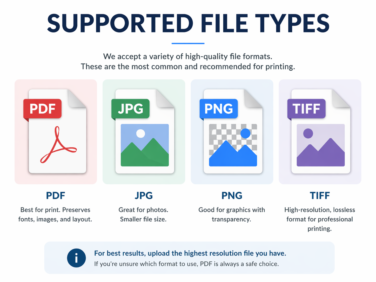 - If the design goes edge-to-edge, bleed should be included before exporting.